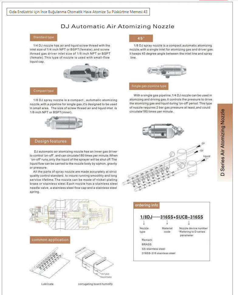 DJ automatic air spray nozzles are innovative spraying technologies commonly used in applications requiring precise and rapid fluid distribution. These nozzles atomize liquids into a fine mist, ensuring a homogeneous distribution and finding widespread use in various industries.